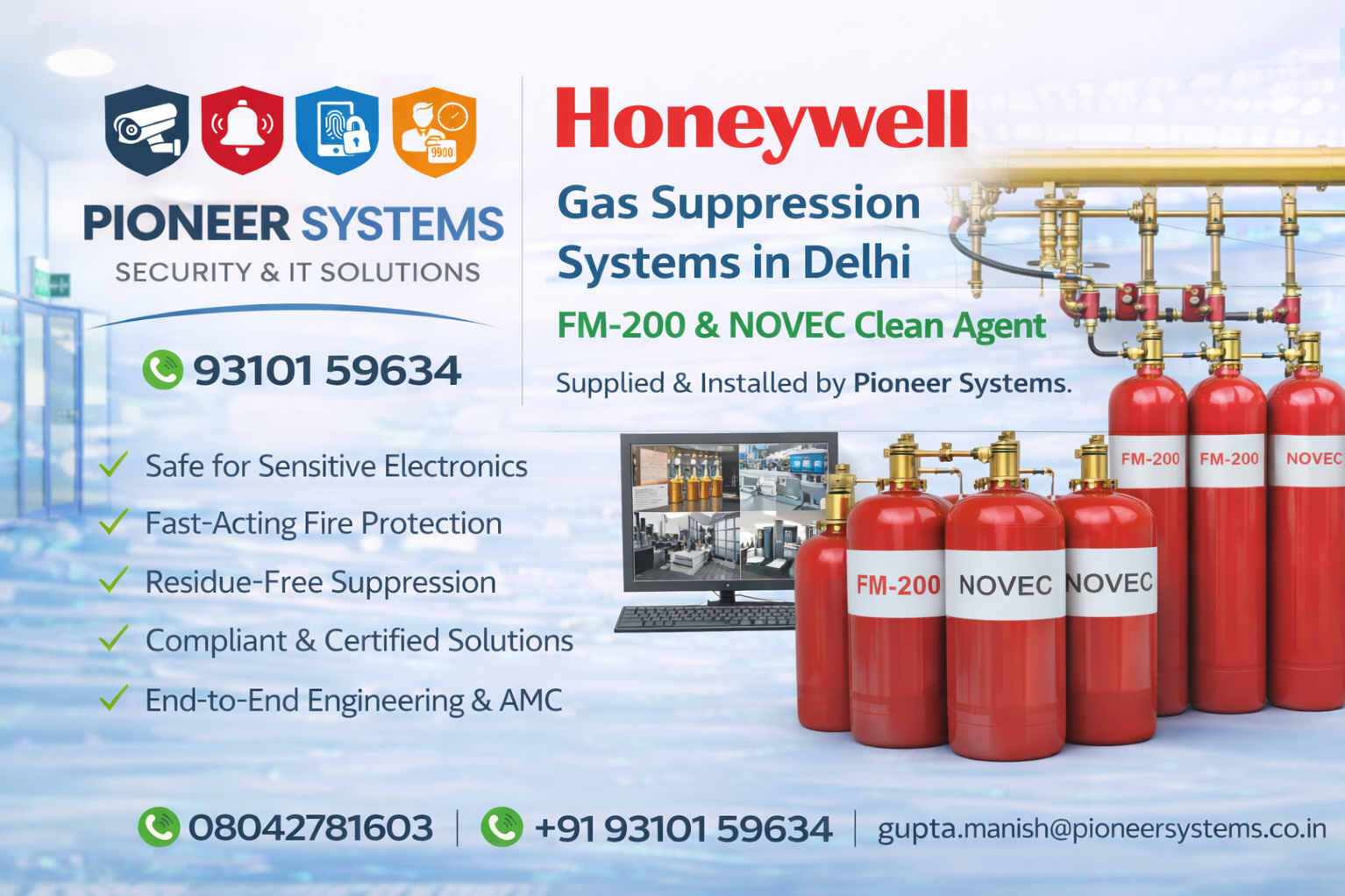 Honeywell Gas Suppression Systems in Delhi – FM-200 & NOVEC Clean Agent | Pioneer Systems